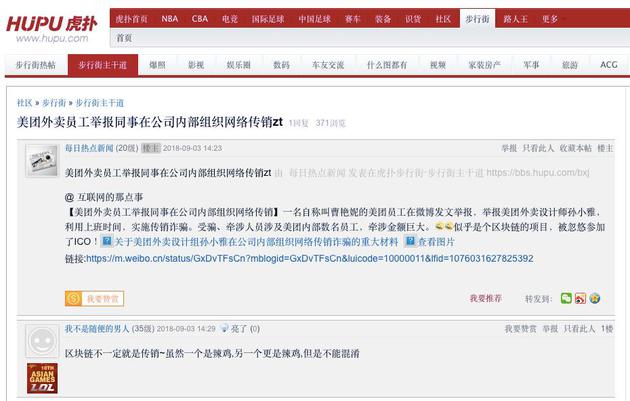 猎云网今日获悉,一名自称叫曹艳妮的美团员工在微博发文《关于美团外卖设计组孙小雅在公司内部组织网络传销诈骗的重大材料》(以下简称:举报材料)举报称,美团外卖设计组孙小雅,利用上班时间向同事介绍区块链公司KCI,实施传销诈骗。受骗、牵涉人员涉及美团内部数名员工,牵涉金额巨大。