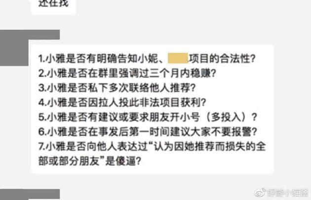 事情在群里曝光后,面对压力,孙小雅百般狡辩,发出十问如下: