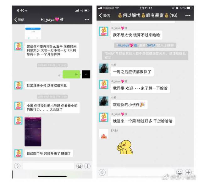 2018年4月28日,孙小雅开始在群里宣传“反正赚钱”、“十万变二十万”项目,邀请群友向她“投资”,并宣传“三个月内绝对稳”。