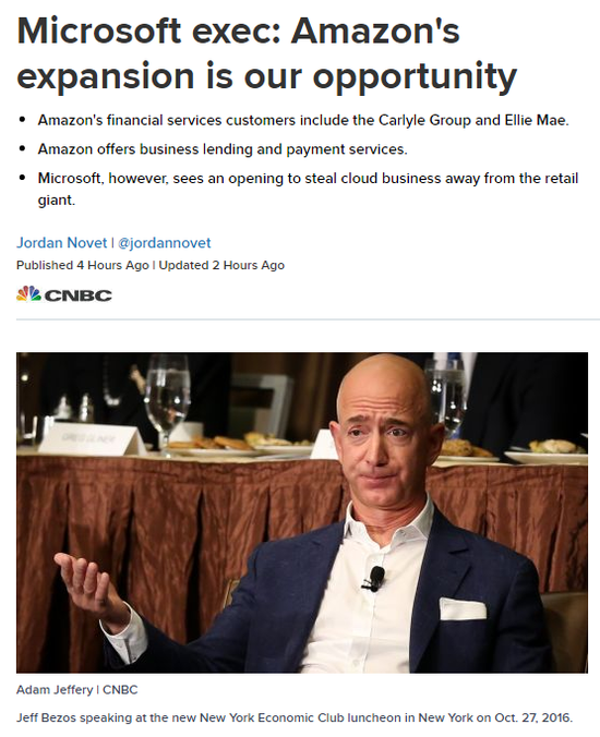 微软高管:亚马逊进军多个行业恰是我们的绝佳机会