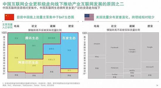 与美国互联网企业相比,中国互联网巨头们坐拥生态优势,有助于其迅速向线下发展。