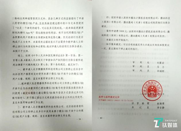 [钛媒体瞬眼播报]钛媒体3月20日消息,就多闪被腾讯指控在未被授权的情况下违规盗用微信/QQ用户数据一事,今天钛媒体获悉,天津市滨海新区人民法院公布了裁定结果,要求抖音立即停止将微信/QQ开放平台授权登录服务提供给多闪使用的行为,同时多闪此前通过抖音擅自获得的微信/QQ用户头像、昵称也被勒令停用。抖音系由北京微播视界科技有限公司经营,多闪系由北京拍拍看看科技有限公司经营。