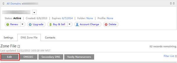 4.点击Edit,修改域名解析